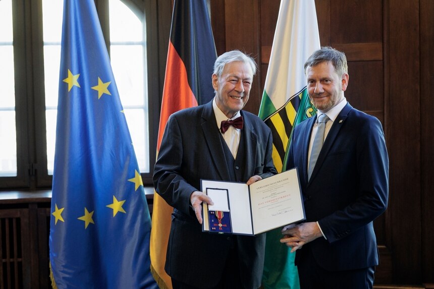 Ministerpräsident Michael Kretschmer verlieh heute stellvertretend für den Bundespräsidenten den Verdienstorden der Bundesrepublik Deutschland an den Denkmalpfleger Dr. Hans-Joachim Jäger.